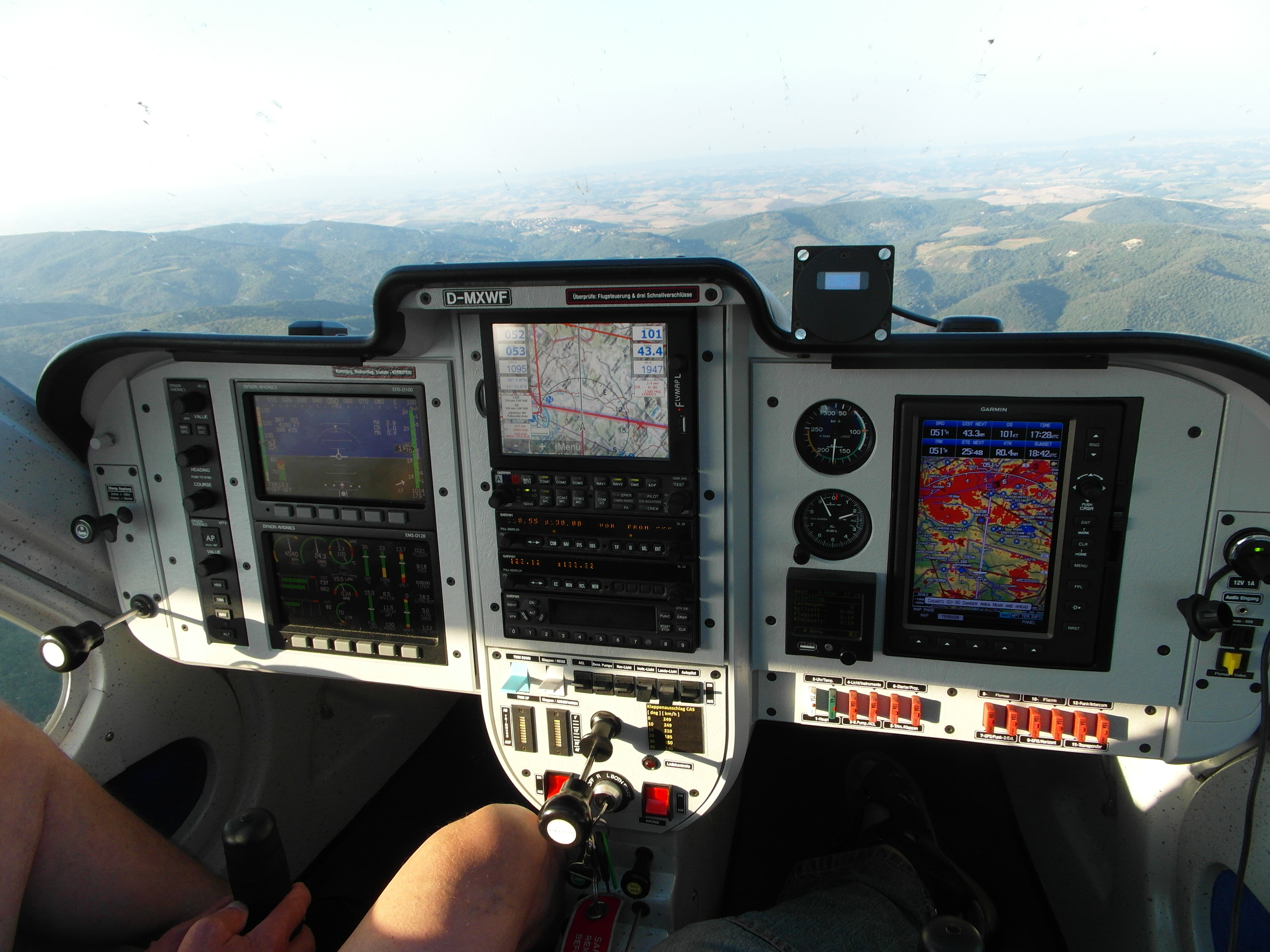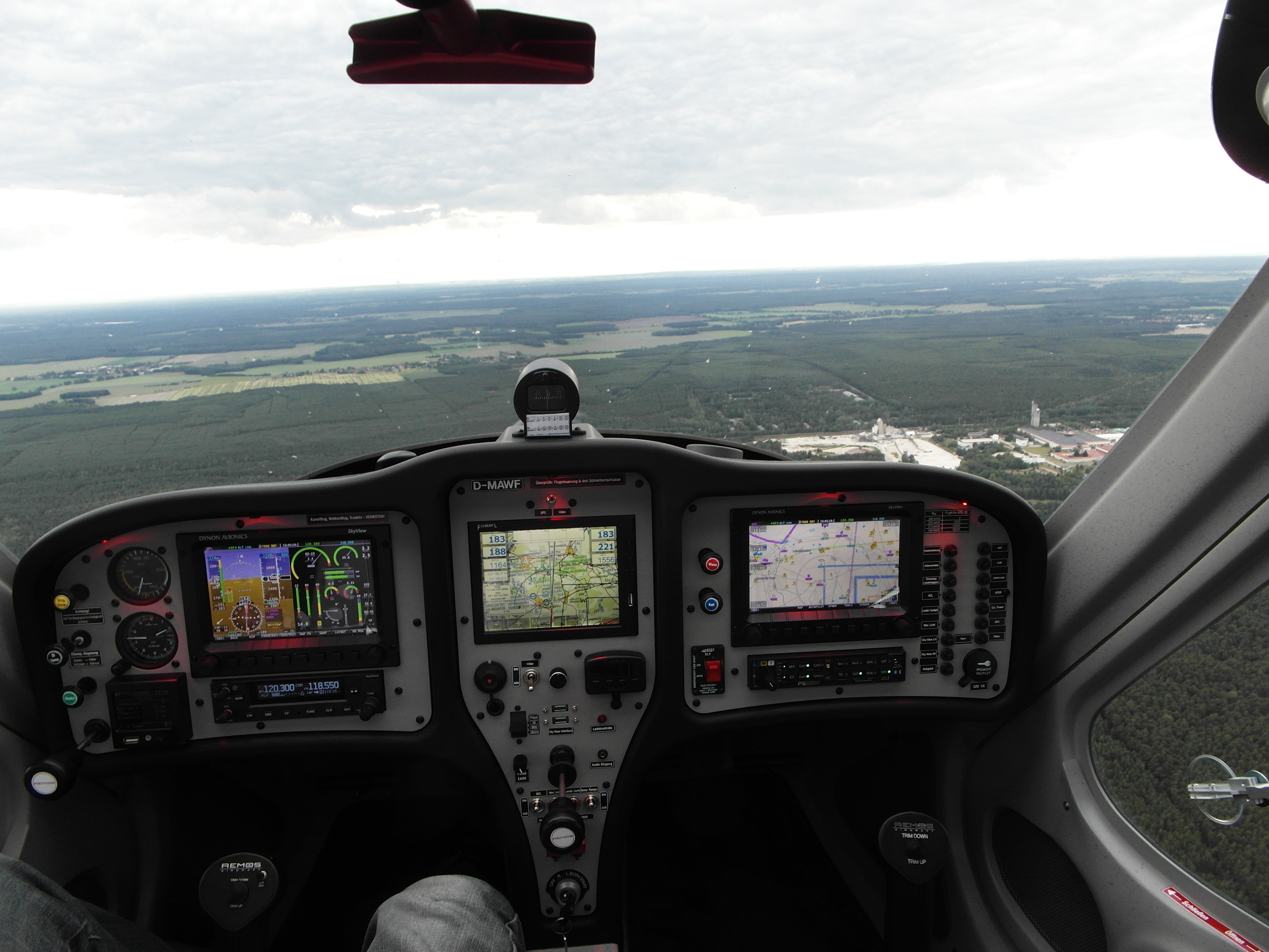 - 2xDynon Skyview mit Synthetic Vision (EFIS, NAV, Triebwerksdaten frei konfigurierbar). Auch die Einblendung der normalen Analoginstrumente ist wählbar