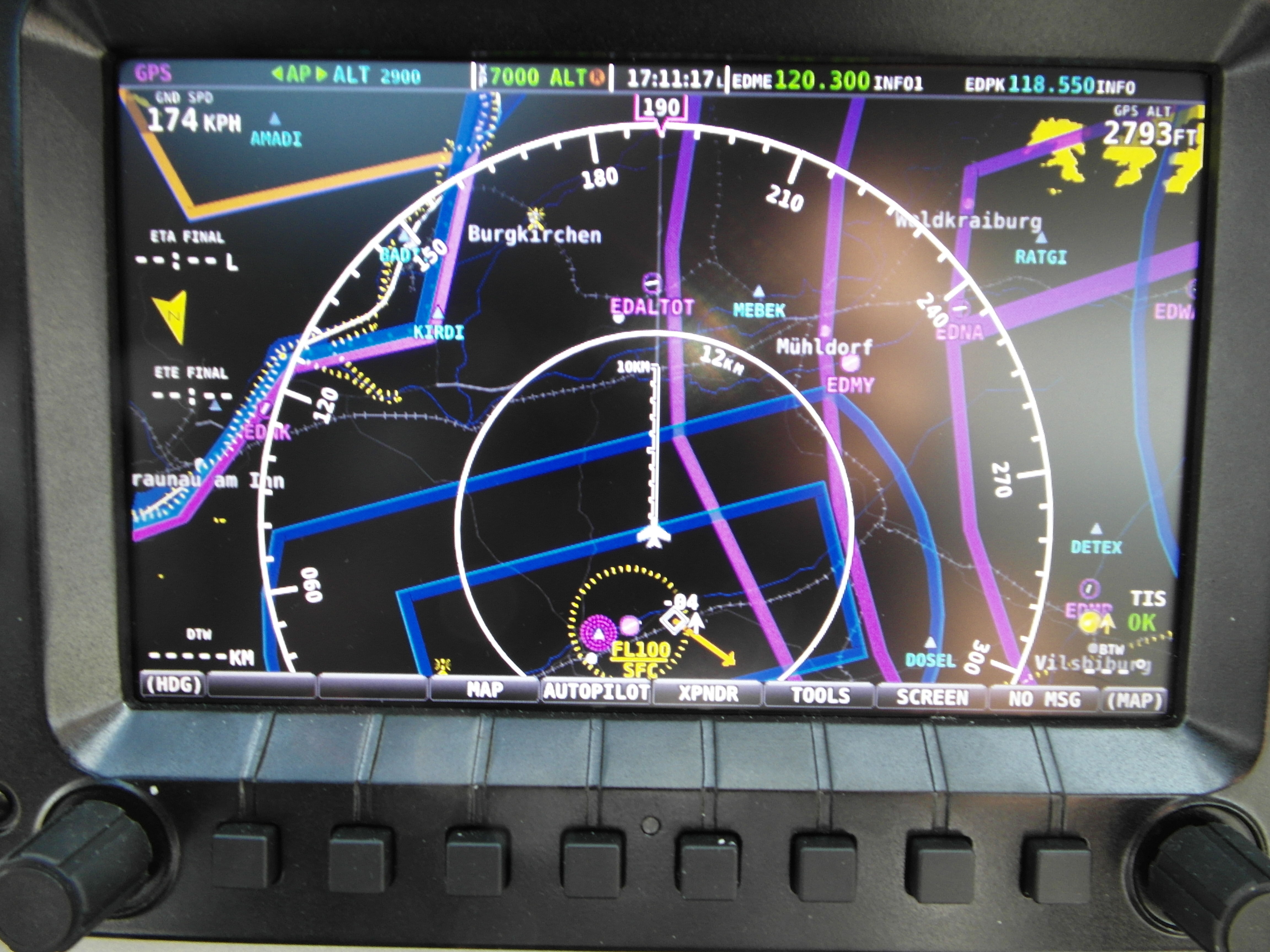 - TCAS (Traffic-Sensor der alle Transpondersignale, auch ADSB und Flarm auf den Bildschirmen sichtbar macht und akustisch warnt)